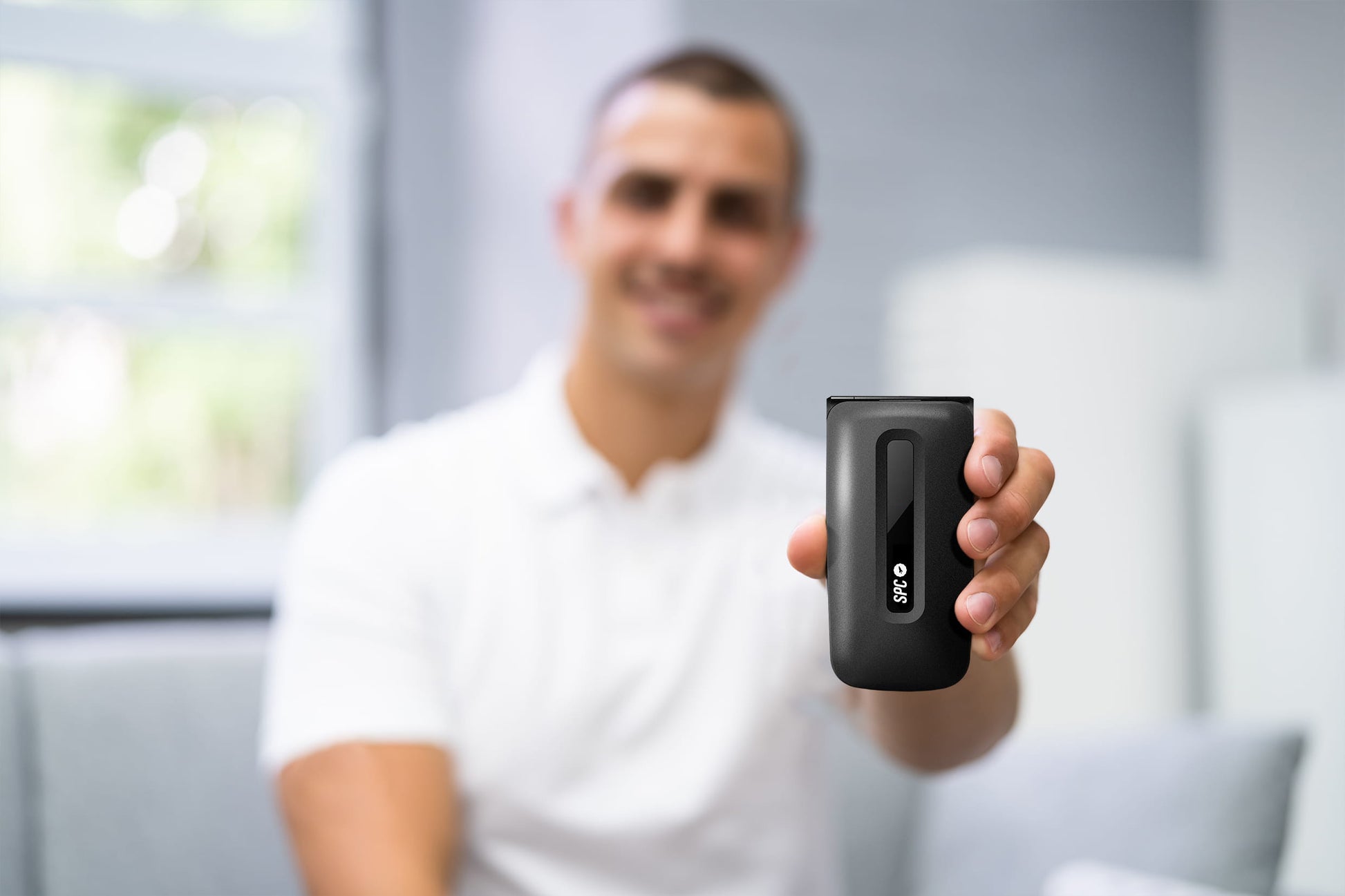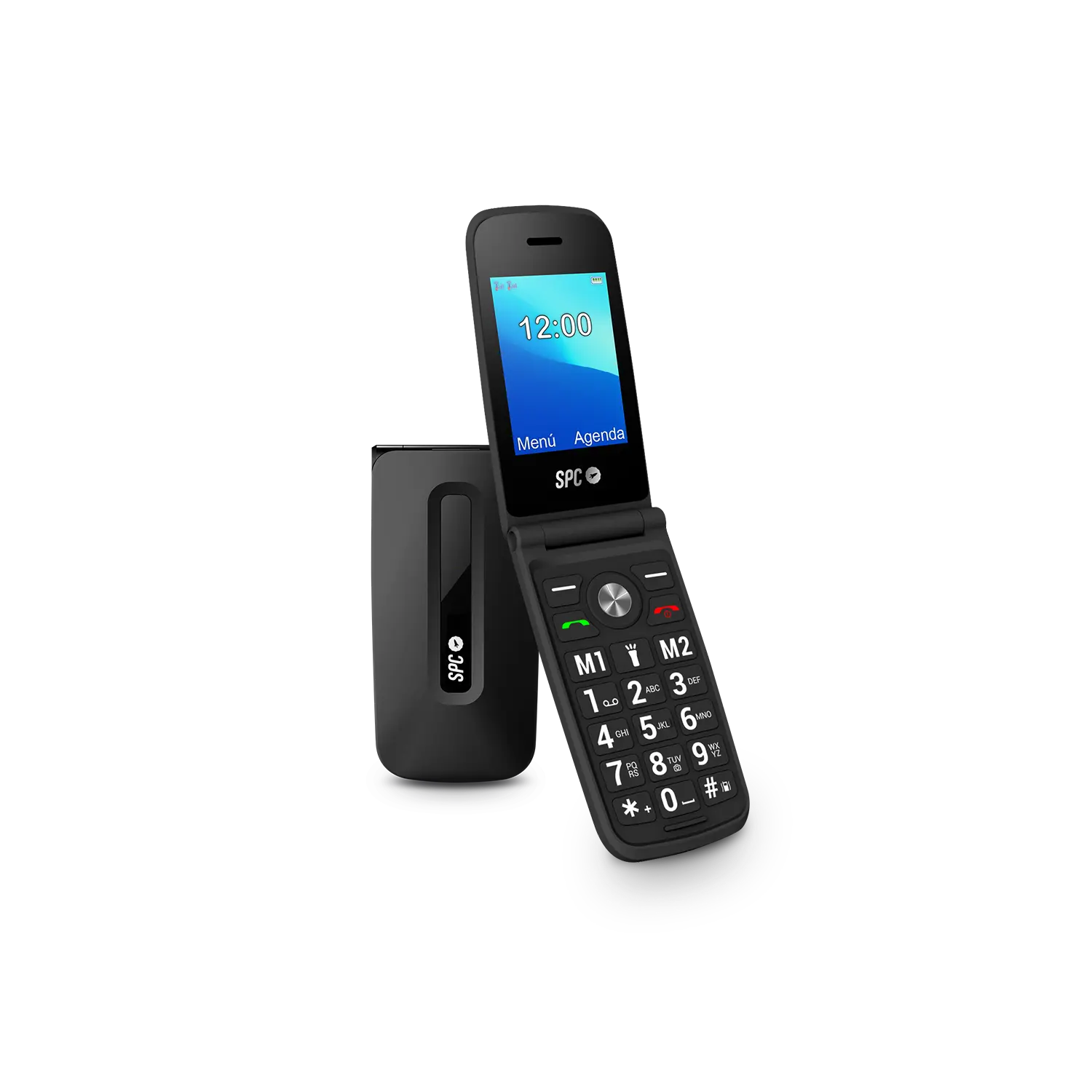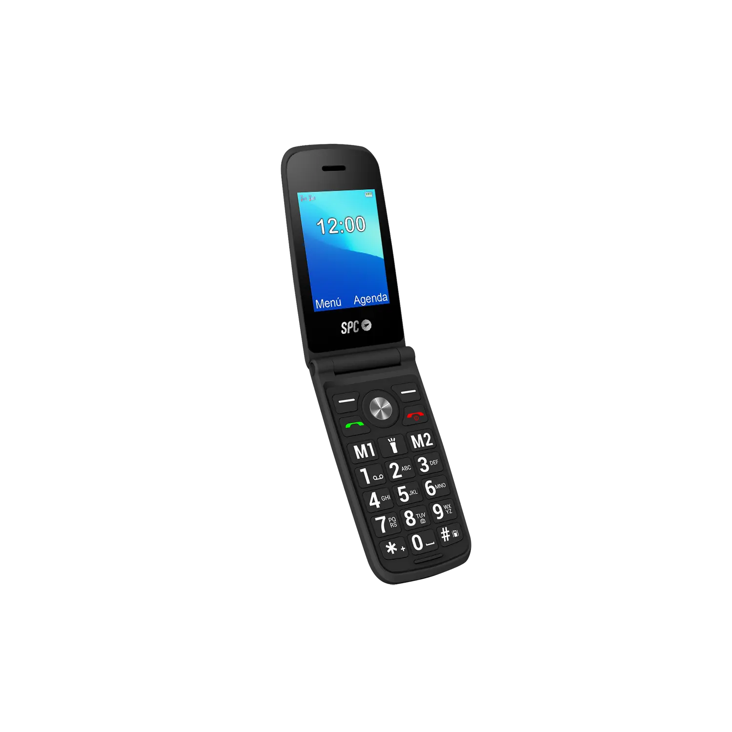 Teléfono móvil con tapa, teclas grandes y manejo intuitivo para quienes buscan llamar sin complicaciones y con la tranquilidad de contar con ayuda automática si algo no va bien.