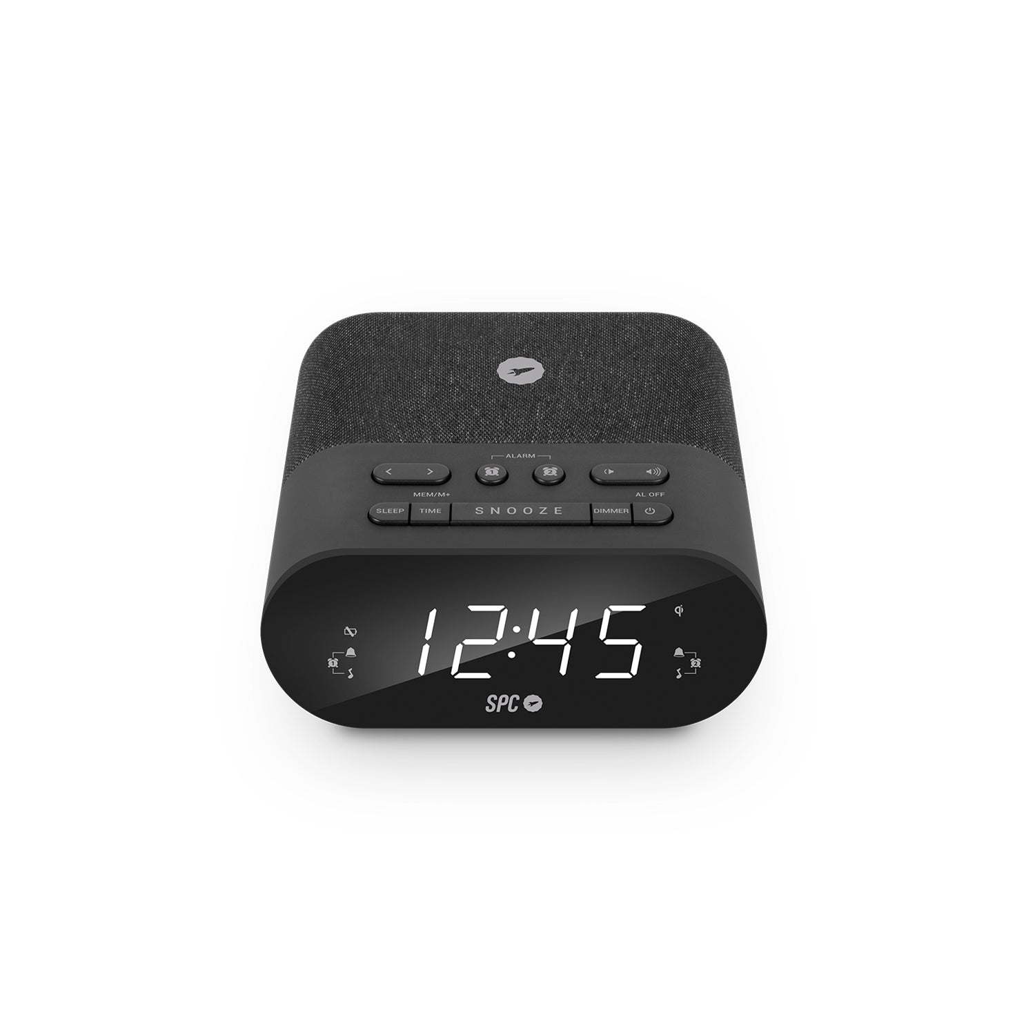 Radio-réveil avec 2 alarmes réglables qui sert aussi de socle de charge sans fil pour votre téléphone intelligent. Un dessin soigné avec une finition en tissu qui organise votre table de nuit et simplifie votre routine quotidienne.
