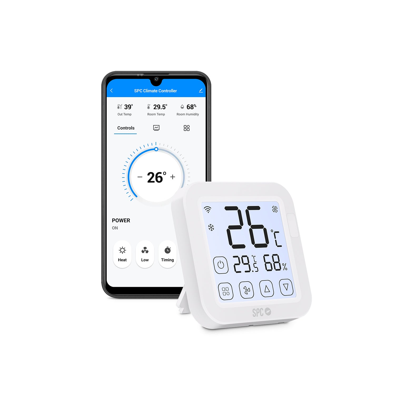 Controlo inteligente para aparelhos de ar condicionado e bombas de calor ar-ar. Compatível com a maioria das marcas, permite programar horários, automatizar por geolocalização e gerir o consumo através da app SPC IoT. Mais conforto e mais poupança num só dispositivo.
