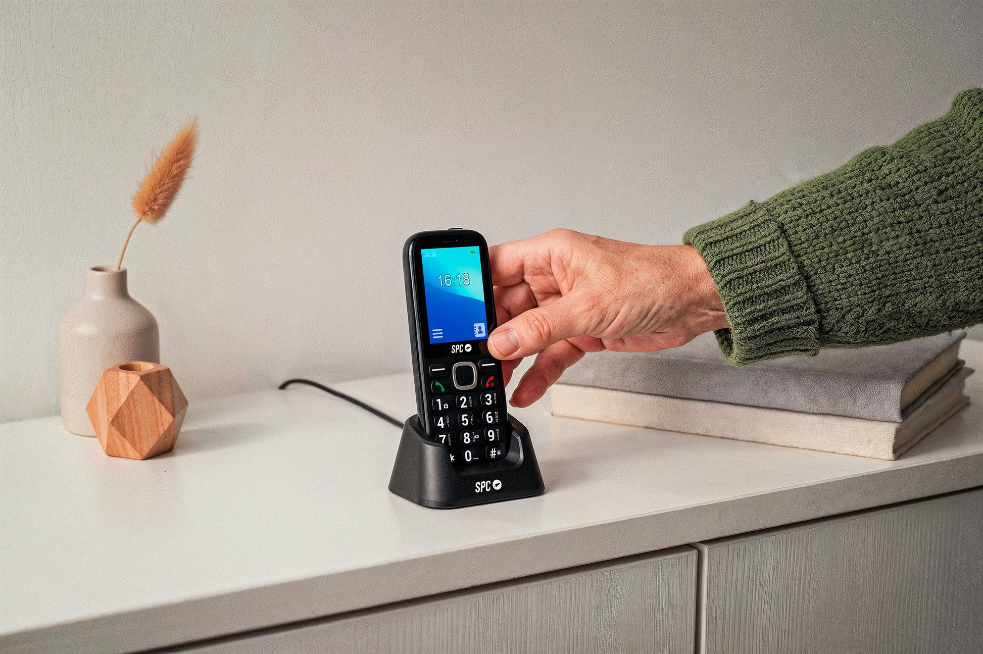 Telefone móvel 4G para pessoas idosas que procuram chamadas claras, teclas grandes e máxima tranquilidade. Ecrã XL anti-riscos de 2,4”, toque muito alto (104dB), botão SOS e base de carregamento para um uso diário simples e seguro. Menu fácil, botão ICE (Em Caso de Emergência), Ajuda Inteligente e bateria de longa duração (1250mAh).