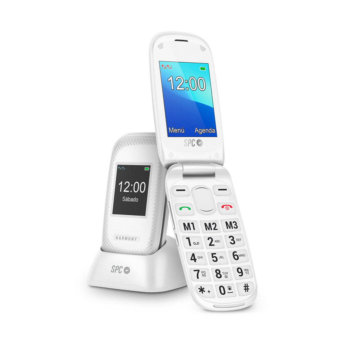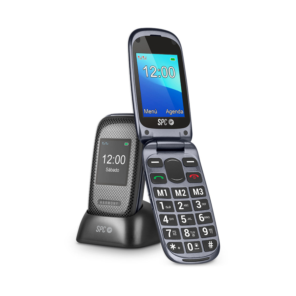 O SPC HARMONY é um telemóvel intuitivo e fácil de utilizar, concebido para quem procura simplicidade, clareza e segurança. O seu design flip protege o teclado e evita pressionamentos acidentais. Atender ou terminar uma chamada é tão simples como abrir ou fechar o telefone. As teclas grandes e retroiluminadas, juntamente com números e letras extragrandes no ecrã, facilitam a marcação sem erros. O ecrã duplo também permite visualizar a hora, o nível da bateria ou o identificador de chamadas mesmo com o telefone fechado. Inclui uma base de carregamento para o manter sempre pronto e carregado, bem como funcionalidades de Ajuda Inteligente que intervêm automaticamente caso algo corra mal.